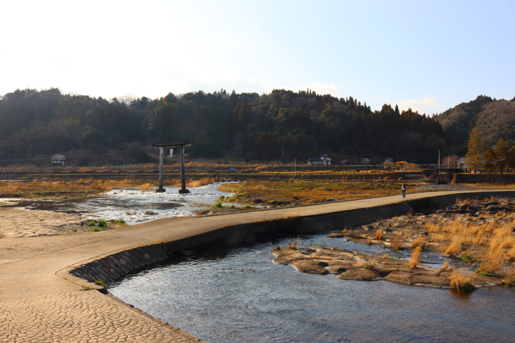 川の中に立つ鳥居が見れるのも、珍しい景色に思えた。